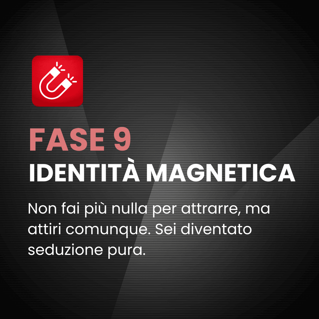 Un metodo che ti accompagna dal sentirti bloccato in ogni situazione al diventare un uomo che attrae senza sforzo, solo per come si muove e sta nel mondo, unendo principi scientifici al lavoro sul campo.